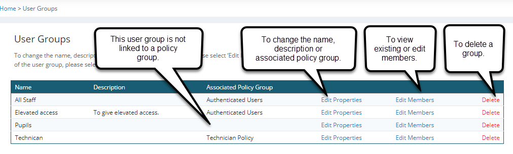 Please note: any new user group you create is effectively just an empty container and will have no members until you define them.
